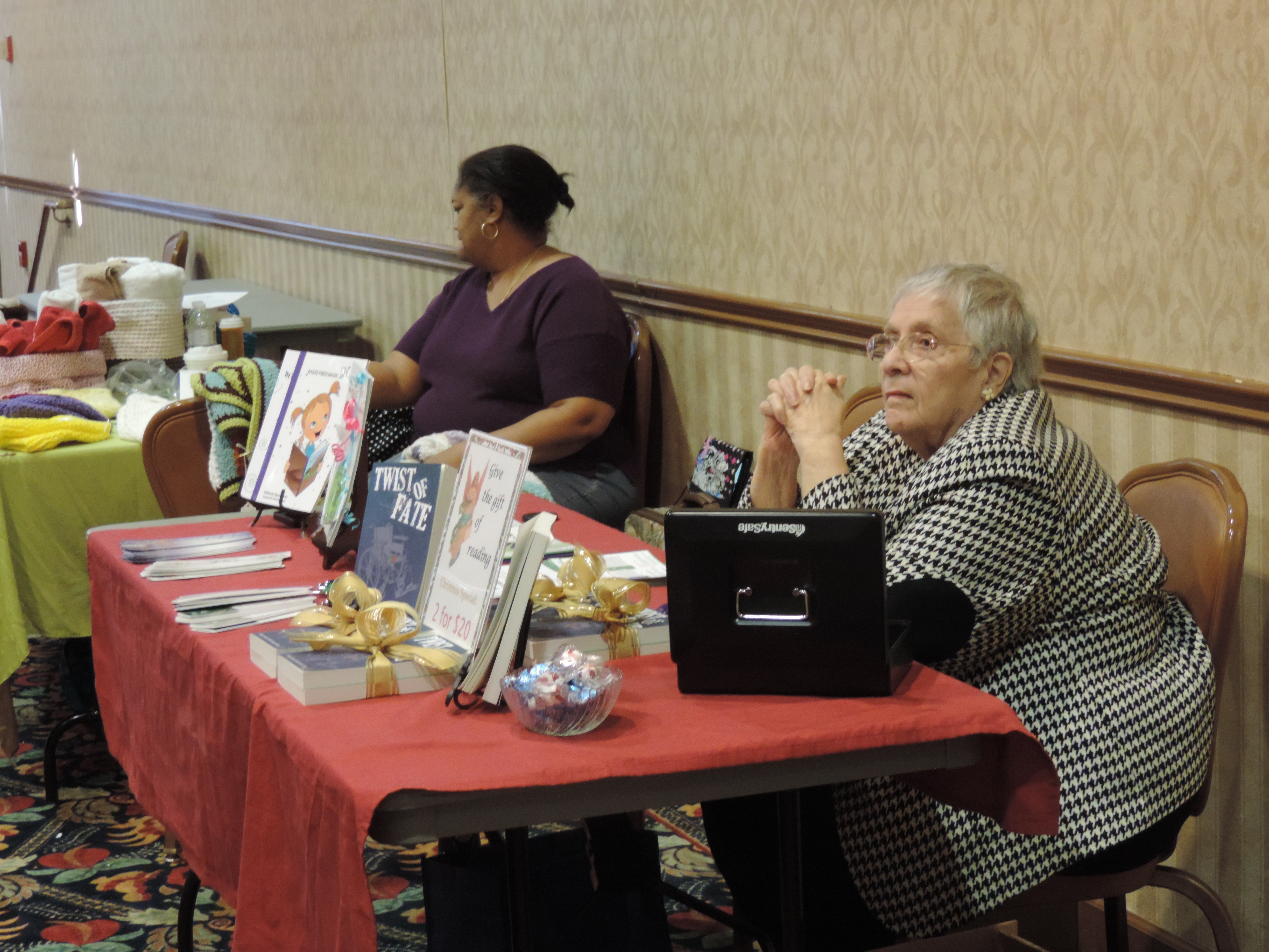 It’s been a great time for these two authors and since Thanksgiving is just two days away, I’m celebrating by starting with “thanks for November.” We sold more books in this month than we sold all summer long despite the fact we had only three events. The wonder started for me the day I opened Prince William County Today and saw mom and me staring up out of the page. Our first speaking engagement was scheduled for Potomac Place assisted living community, and the organizers advertised our event to the public. As a result, several of the people at the well-attended event showed up because we were the featured speakers. They’d heard us at another book talk and came to buy book two (Wretched Fate) and hear how we were doing with our exciting mother/daughter adventure. There is nothing more satisfying to someone who creates than having someone seek you out.